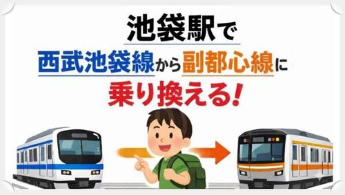 池袋駅で西武池袋線から東京メトロ副都心線に乗り換える方法についてわかりやすく解説しています。乗り換えの所要時間、おすすめの乗車位置、道順などについて説明しています。