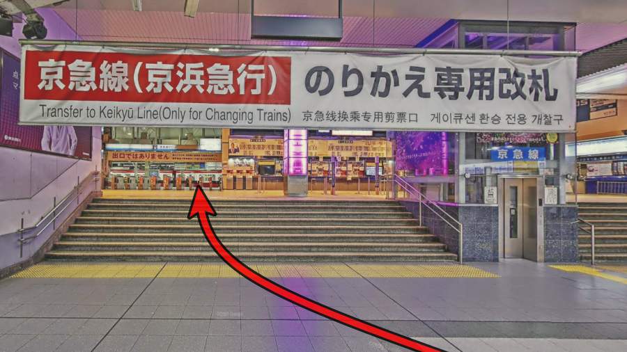 新幹線ホームから京急線2番線ホーム(泉岳寺・都営浅草線方面)と3番線ホーム(ウィング号の横浜・横須賀中央方面)までは4分半程度です。