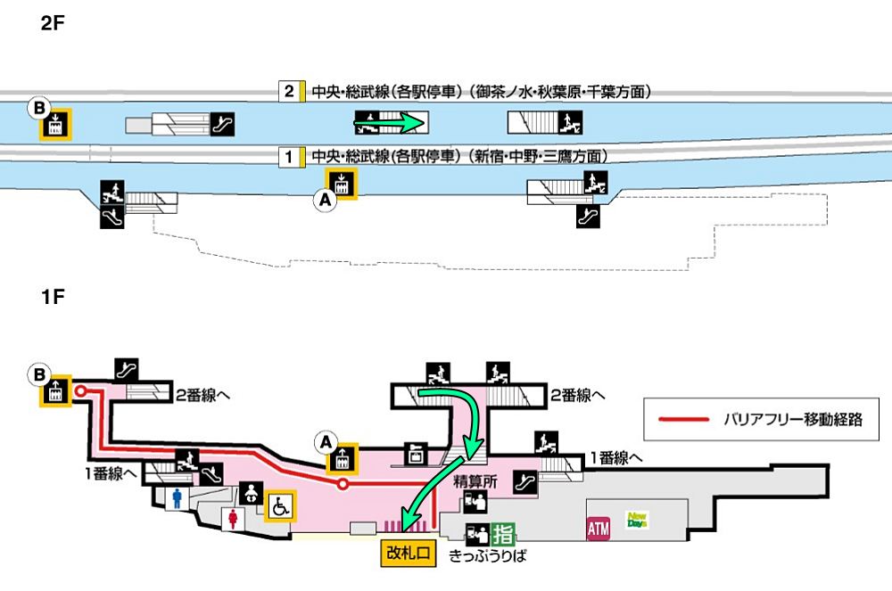 御茶ノ水・千葉方面(2番線ホーム着)をご利用の場合