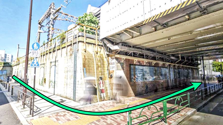④清澄通りとの合流とガード下 道なりに進むと、「清澄通り」という大きな通りに突き当たります。ここを左に曲がり、JR総武線のガード下をくぐり抜けます。