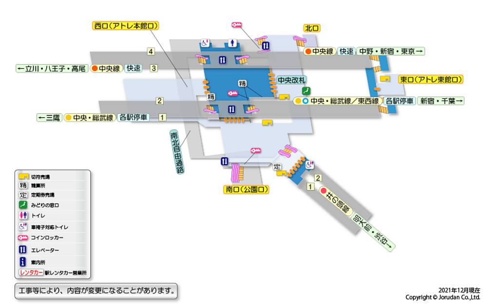 この日はJR中央本線で吉祥寺駅(武蔵野市)に行きました。当駅には、JR中央本線と京王井の頭線が乗り入れています。