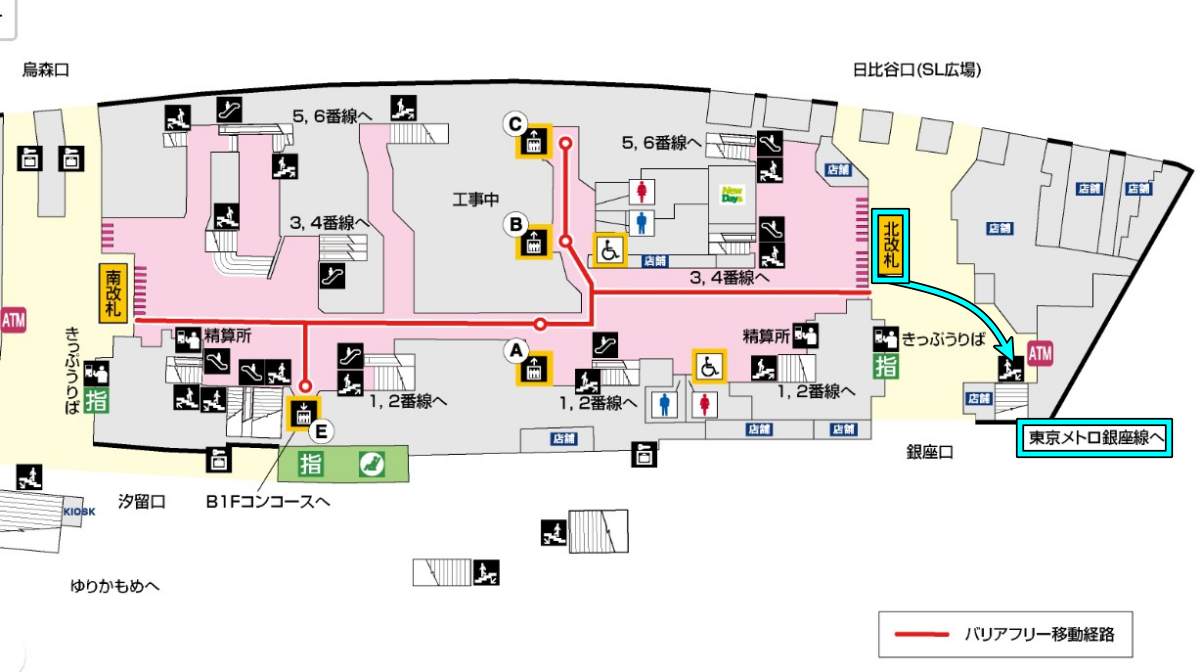 ルート1:北改札(銀座口)経由