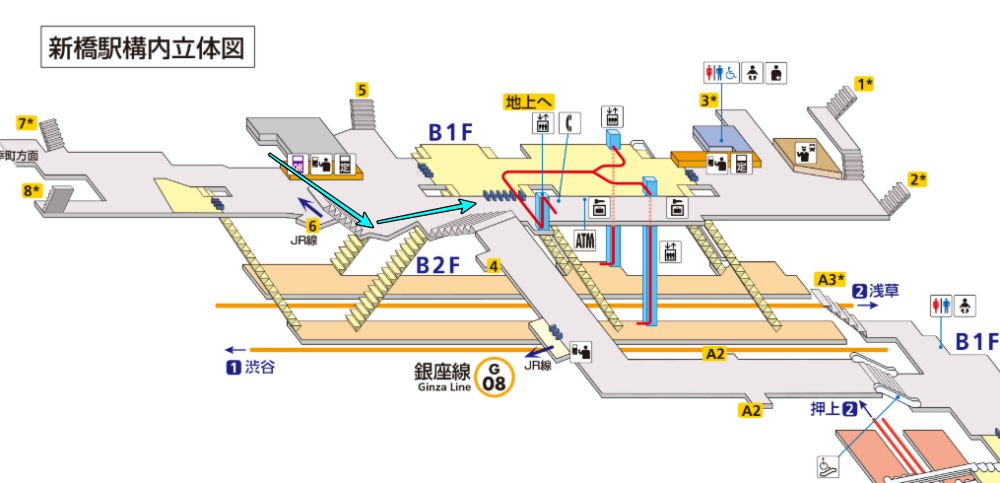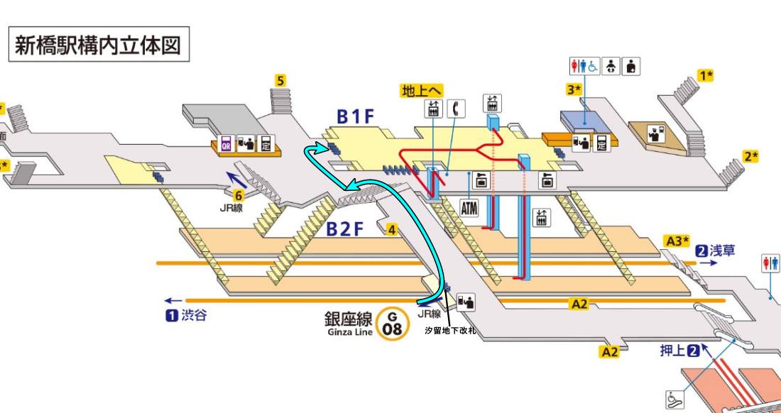 ステップB:汐留地下改札から銀座線へ