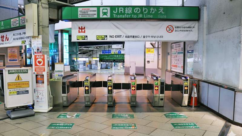 推奨乗車位置(12両編成:9号車2番ドアなど)で電車を降ります。すると、電車を降りると目の前に「JR線のりかえ」改札があります。