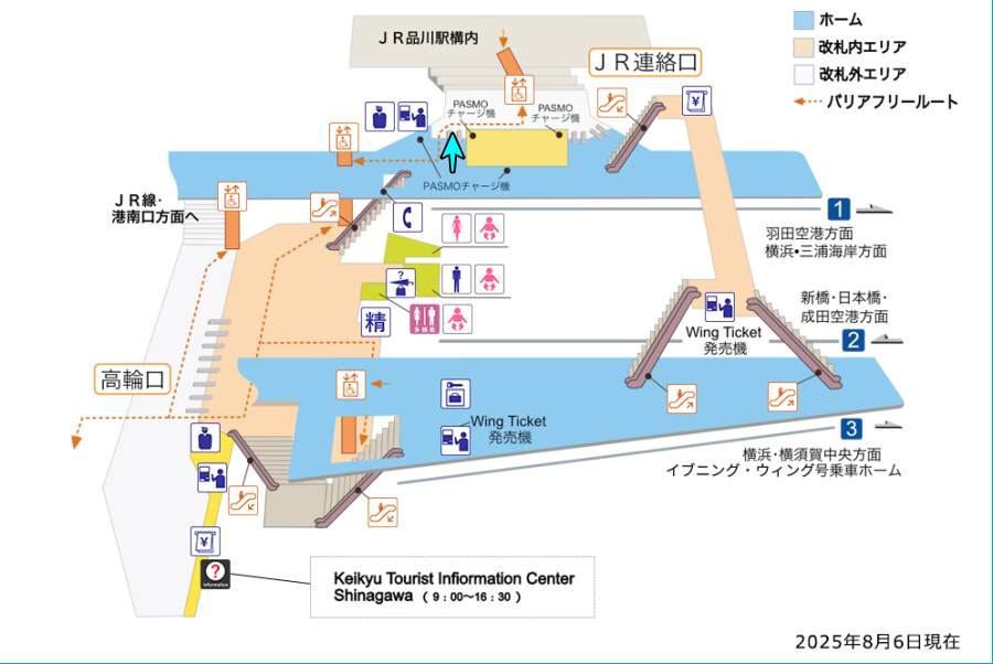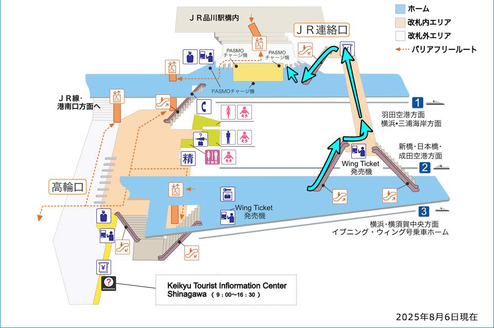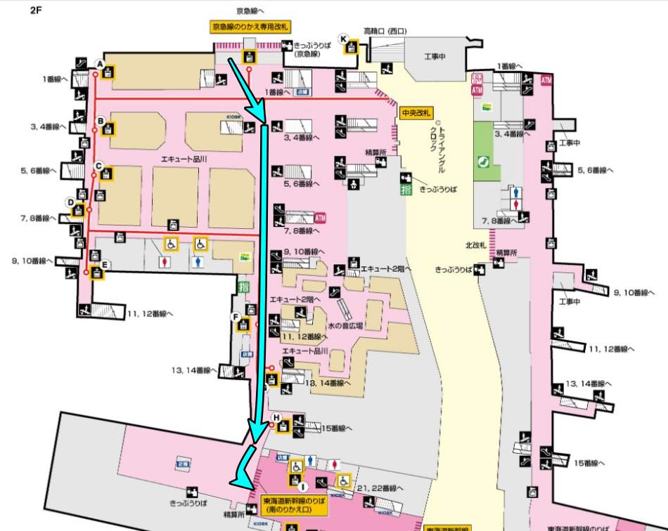 このルートは、都営浅草線方面や成田空港方面から京急線で品川駅に到着する方向けのガイドです。