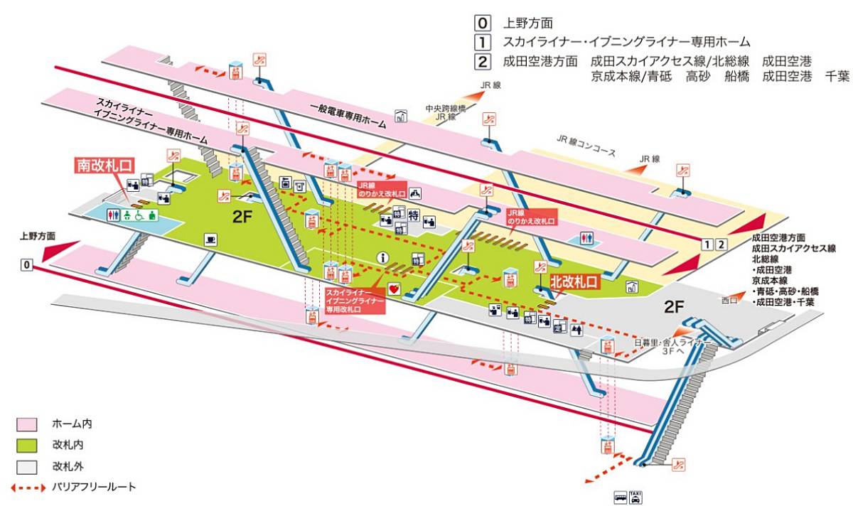 道順: 京成線ホームからJR線のりかえ改札口まで