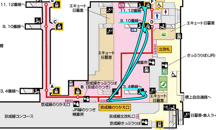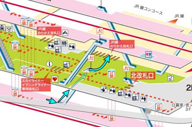 - 道順: 京成線ホームからJR線のりかえ改札口まで