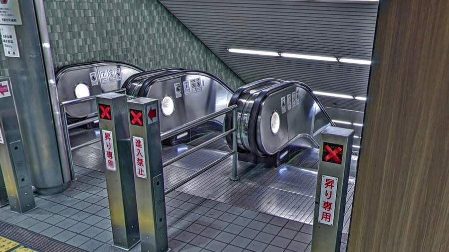 ①ホーム南側の階段・エスカレーター(d/e/f)を上る