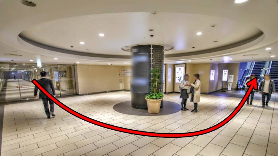 ⑥突き当たりにある2つ目の自動ドアを通り、左斜め前のエスカレーターでB1階へ上がります。